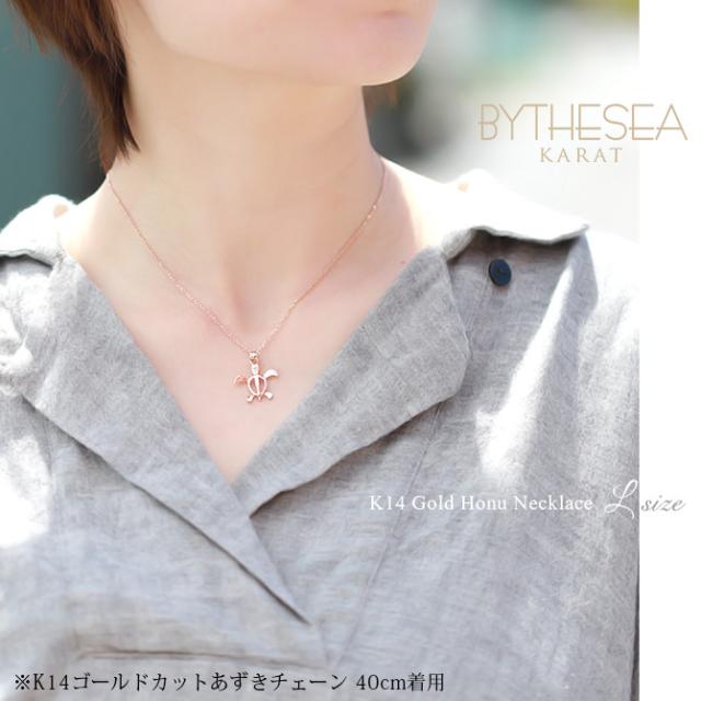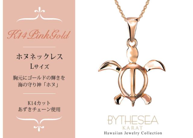 ゴールド ネックレス ハワイアンジュエリー ネックレス ホヌ ピンクゴールド ネックレス 幸せを運ぶ ホヌ Lサイズ 14K K14ピンクゴールド 14k k14カットあずきチェーン太0.9mm ギフトラッピング可能 プレゼント クリスマス 【品番:CG-GP117R-CH123】