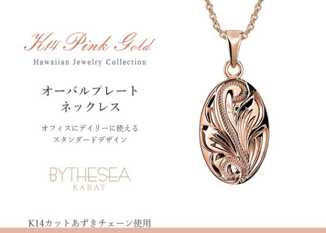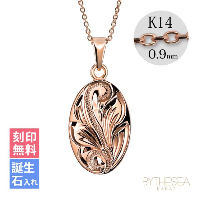 ゴールド ネックレス ハワイアンジュエリー ネックレス ゴールド ピンクゴールド ネックレス 刻印 無料 誕生石入れ可 シンプルオーバル 14K K14 メダル 14k k14カットあずきチェーン太0.9mm ギフトラッピング可能 プレゼント クリスマス 【品番:CG-GP118R-CH123】