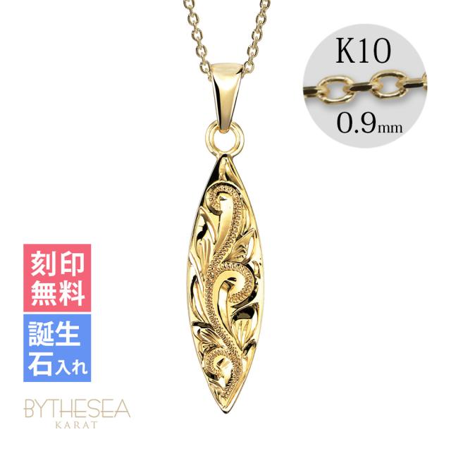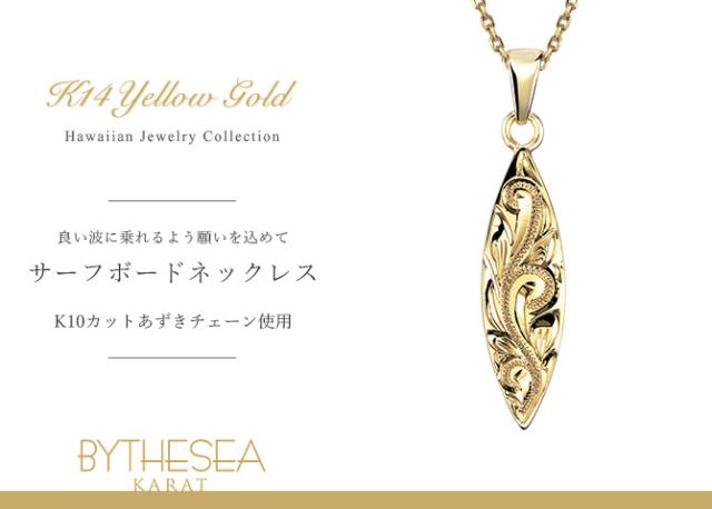 ゴールド ネックレス ハワイアンジュエリー ネックレス イエローゴールド 刻印 無料 誕生石入れ可 サーフボード 14K K14イエローゴールド K10カットあずきチェーン太さ0.9mm ギフトラッピング可能 メンズ レディース クリスマス 【品番:CG-GP121-228SDC4】