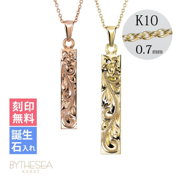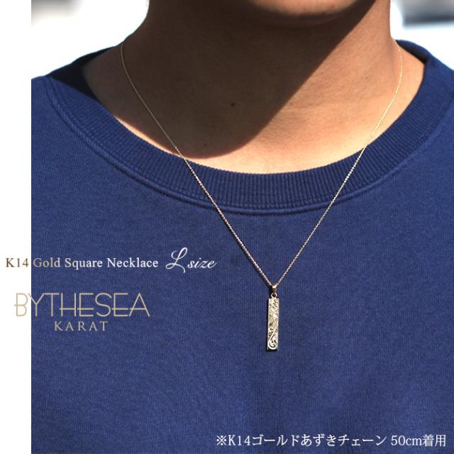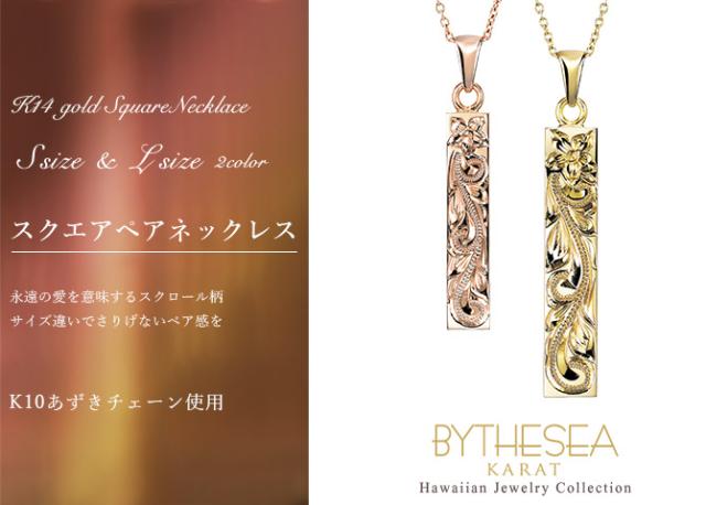 ゴールド ネックレス ハワイアンジュエリー ネックレス ゴールド ペアネックレス 2本セット 刻印 無料 誕生石 スクエア バー Sサイズ Lサイズ 14K K14ゴールド K10 10Kあずきチェーン太0.7mm 2本セット カップル 夫婦 プレゼント クリスマス 【品番:CG-GP122-GP123P】