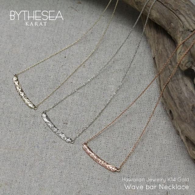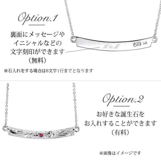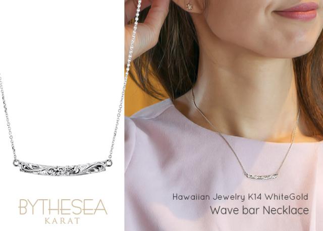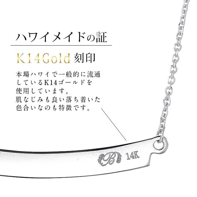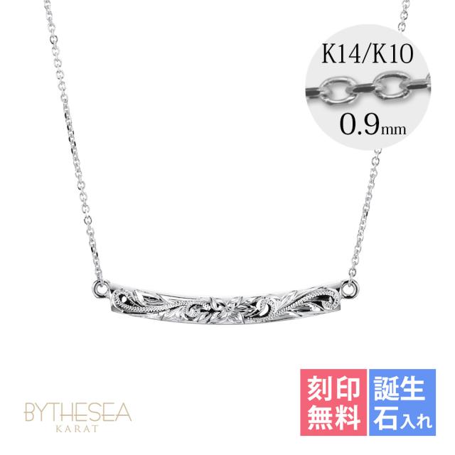 ゴールド ネックレス ハワイアンジュエリー ネックレス ホワイトゴールド ネックレス 刻印 無料 誕生石入れ可 ウェーブバー カーブ 14K K14ホワイトゴールド 14k k14カットあずきチェーン太0.9mm ギフトラッピング可能 プレゼント ホワイトデー 【品番:CG-GP124W】