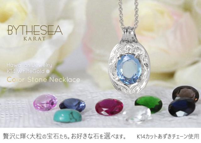 ゴールド ネックレス ハワイアンジュエリー ネックレス ホワイトゴールド ネックレス 刻印 無料 誕生石入れ可 大粒カラーストーン 14K K14 14k k14カットあずきチェーン太0.9mm ギフトラッピング可能 プレゼント ホワイトデー 卒業式 入学式 【品番:CG-GP125W-1-CH123】