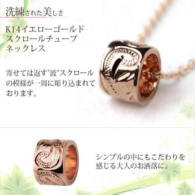 ゴールド ネックレス ハワイアンジュエリー ネックレス ゴールド ピンクゴールド 14K K14 ネックレス スクロールチューブ Sサイズ 14k カットあずきチェーン太0.9mm ギフトラッピング可能 BY THE SEA バイザシー プレゼント クリスマス 【品番:CG-GP127R-CH123】