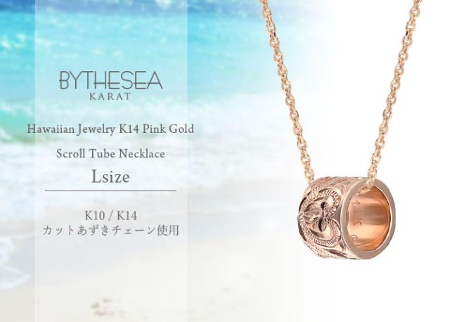 ゴールド ネックレス ハワイアンジュエリー ネックレス ゴールド ピンクゴールド ネックレス スクロールチューブ Lサイズ 14k カットあずきチェーン太0.9mm ギフトラッピング可能 BY THE SEA バイザシー プレゼント ホワイトデー 卒業式 入学式 【品番:CG-GP126R-CH123】