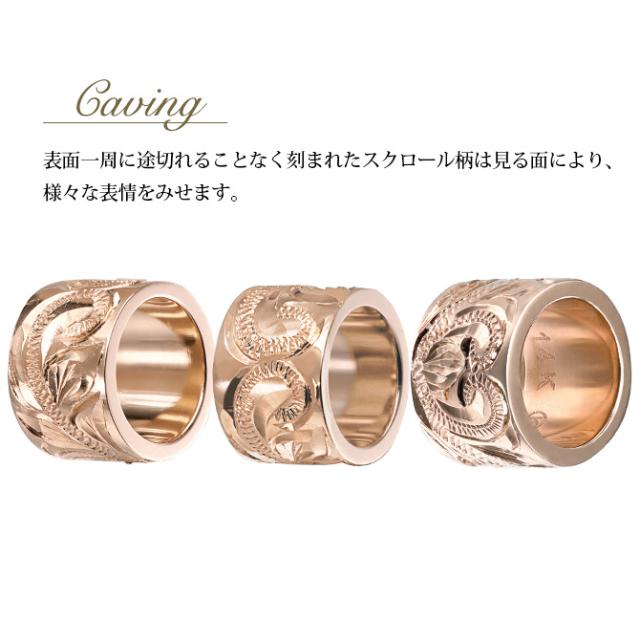 筒状の表面を一周するようにスクロール模様が彫り込まれたバレルモチーフ。ゴールドの艶と繊細な彫りのコントラストが美しいです。