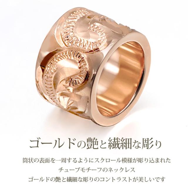 ゴールド ネックレス ハワイアンジュエリー ネックレス ゴールド ピンクゴールド ネックレス スクロールチューブ Lサイズ 14k k14カットあずきチェーン太1.4mm 長さ ギフトラッピング可能 メンズ レディース プレゼント ホワイトデー 【品番:CG-GP126R-CH1020】