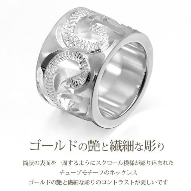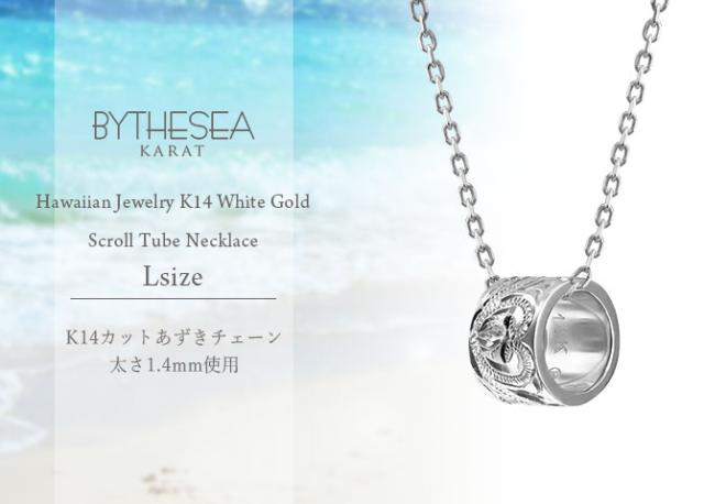 ゴールド ネックレス ハワイアンジュエリー ネックレス ゴールド ホワイトゴールド ネックレス スクロールチューブ Lサイズ 14Kカットあずきチェーン太1.4mm ギフトラッピング可能 BY THE SEA バイザシー プレゼント ホワイトデー 卒業式 入学式 【品番:CG-GP126W-CH1020】