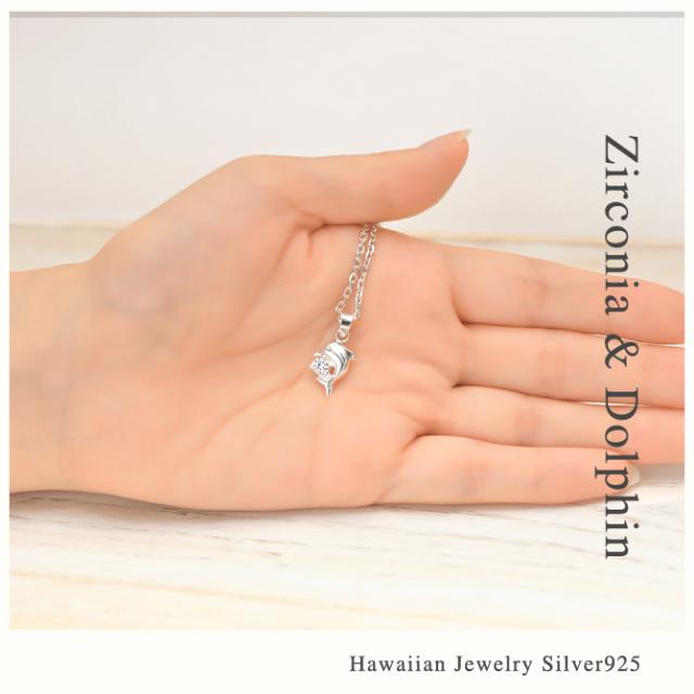 ハワイアンジュエリー ネックレス シルバー ネックレス ドルフィン イルカ ネックレス ジルコニア シンプル シルバー925 ギフトラッピング可能 チェーン 長さ選べる メンズ レディース 誕生日 プレゼント ホワイトデー 卒業式 入学式 【品番:CG-PSP-006】