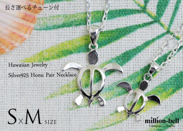 ハワイアンジュエリー ネックレス ペア ホヌ ハワイアンジュエリー ペアネックレス 2本セット ホヌ Sサイズ Mサイズ お守りモチーフ シルバー925 ギフト ラッピング 大人 友達 シンプル カップル 夫婦 プレゼント ホワイトデー 卒業式 入学式 【品番:CG-SP21701-SP24601P】