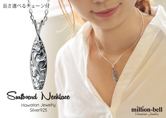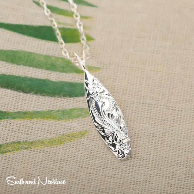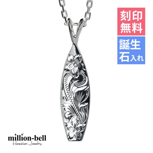 ハワイアンジュエリー ネックレス シルバー ネックレス 刻印 無料 誕生石入れ可 サーフーボード シンプル シルバー925 ギフトラッピング可能 チェーン 長さ選べる メンズ レディース 誕生日 プレゼント クリスマス 【品番:CG-SP2513】