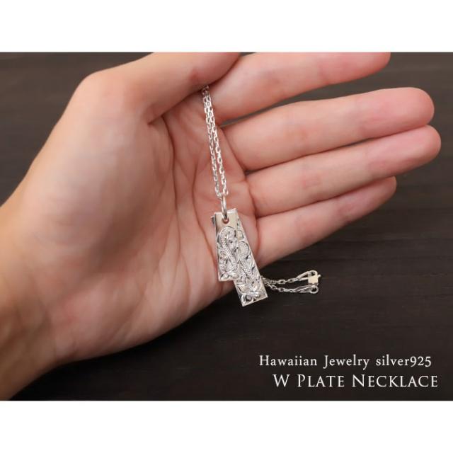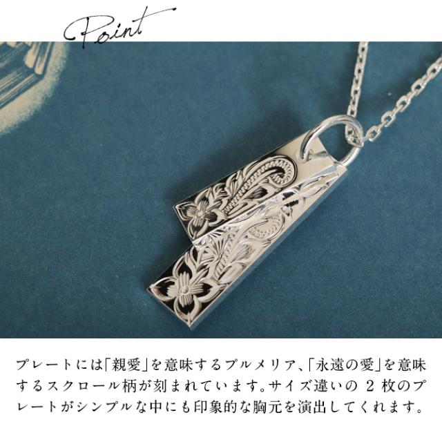 ハワイアンジュエリー ネックレス シルバー ペアネックレス 2本セット 刻印 無料 誕生石入れ可 2枚のプレート スクロール 定番プレート シルバー925 ギフトラッピング可能 カップル 夫婦 プレゼント クリスマス 【品番:CG-SP2526P】