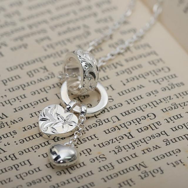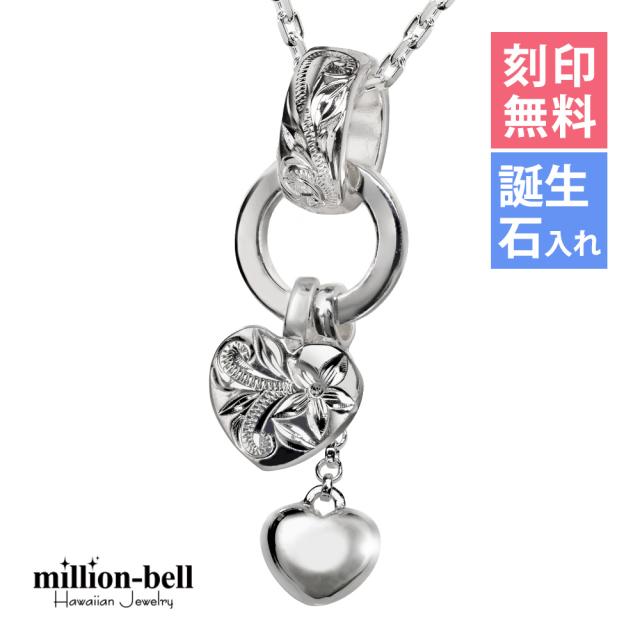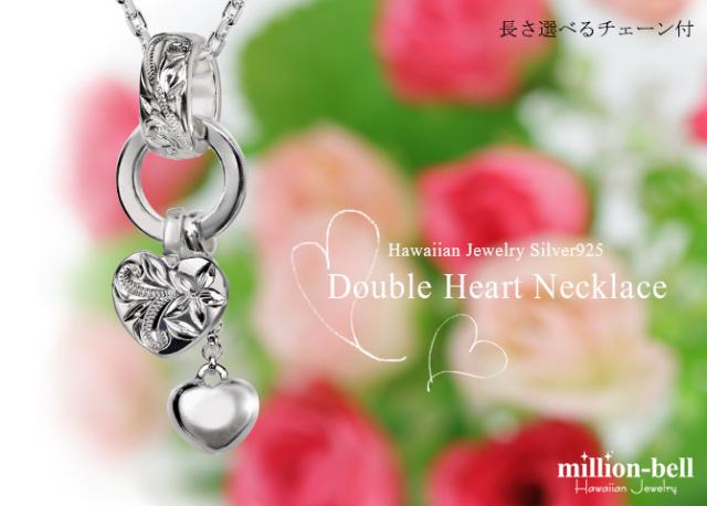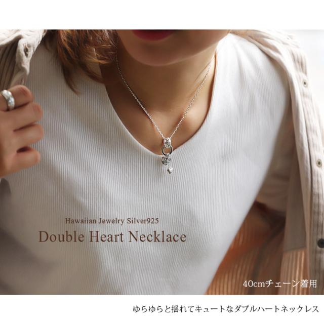 ハワイアンジュエリー ネックレス シルバー ネックレス 刻印 無料 誕生石入れ可 ダブルハート Wハート 人気デザイン シンプル シルバー925 ギフトラッピング可能 チェーン 長さ選べる プレゼント クリスマス 【品番:CG-SP2630】
