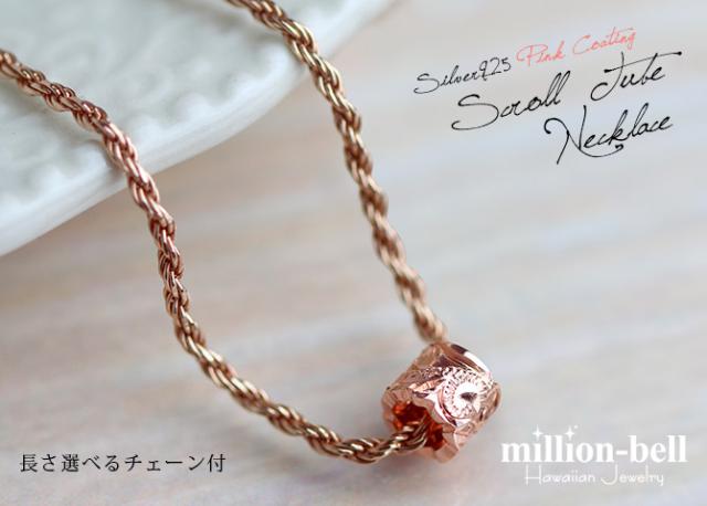 ハワイアンジュエリー ネックレス シルバー バレル シルバー ネックレス カットアウト チューブ ピンクコーティング シンプル シルバー925 ギフトラッピング可能 チェーン 長さ選べる プレゼント クリスマス 【品番:CG-SP3237】