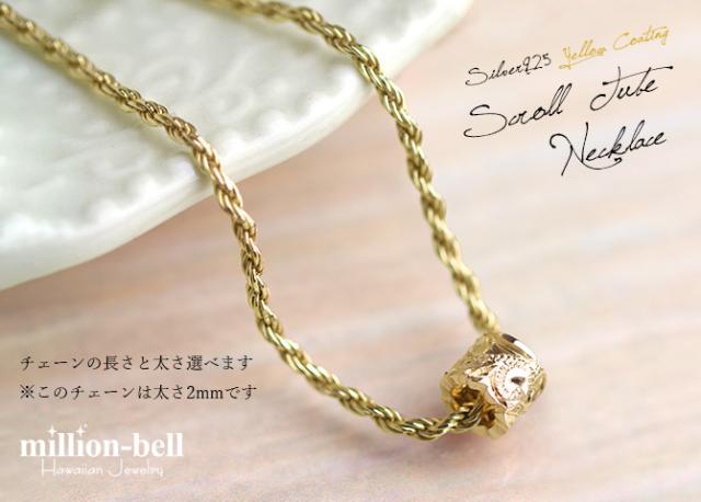 ハワイアンジュエリー ネックレス シルバー バレル シルバー ネックレス カットアウト チューブ イエローコーティング シンプル シルバー925 ギフトラッピング可能 チェーン 長さ選べる プレゼント ホワイトデー 卒業式 入学式 【品番:CG-SP3238】