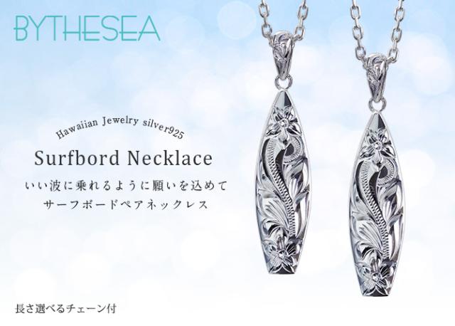 ハワイアンジュエリー ネックレス スクロール シルバー ペアネックレス 2本セット 刻印 無料 誕生石入れ可 サーフボード バチカン彫模様 シルバー925 長さ選べる BY THE SEA バイザシー カップル 夫婦 プレゼント クリスマス 【品番:CG-SP326P】