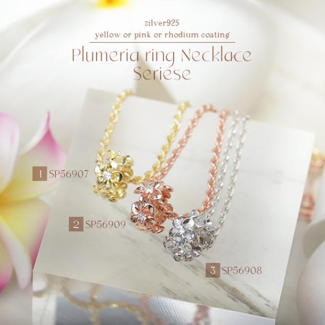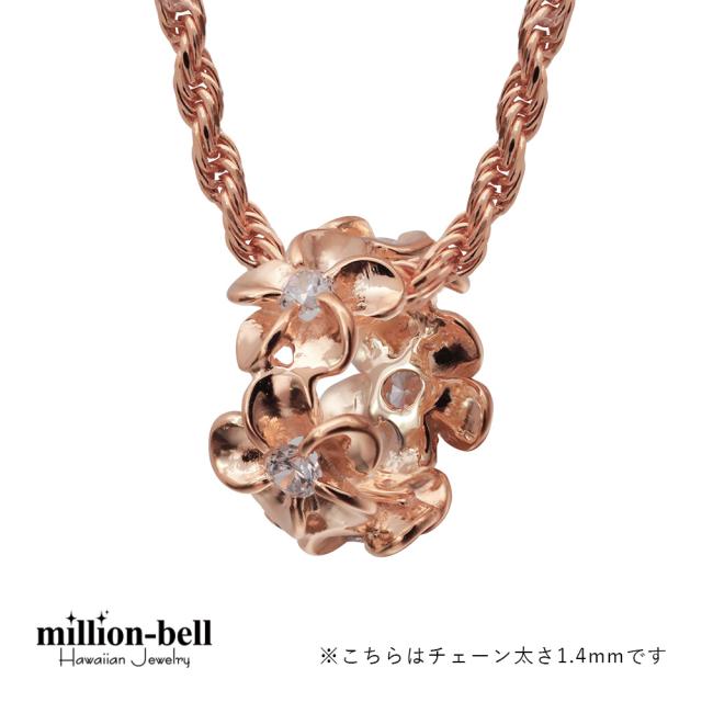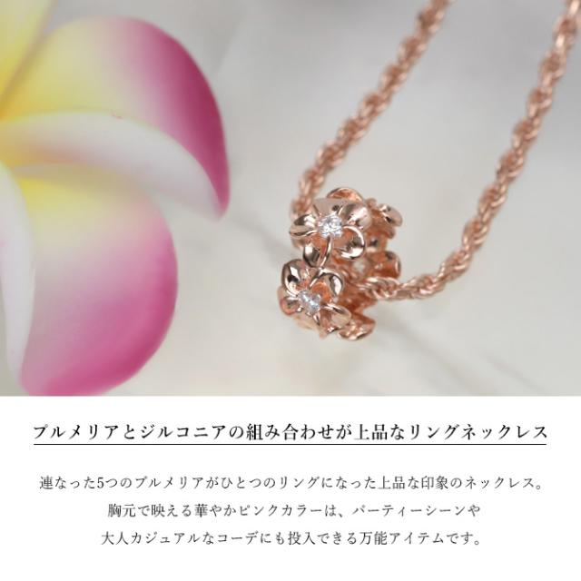 ハワイアンジュエリー ネックレス プルメリア シルバー ネックレス ピンクチューブ ジルコニア シルバー925 ピンクコーティング ギフトラッピング可能 チェーン 長さ選べる プレゼント 入学式 就職 お祝い 新生活 【品番:CG-SP56909】