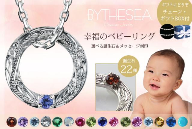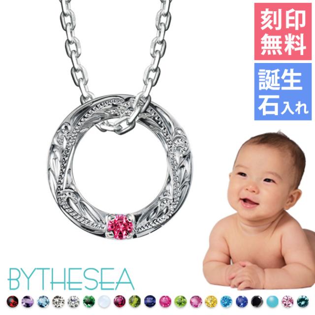 赤ちゃん お誕生のお祝いに ハワイアンジュエリー ベビーリング 刻印 無料 誕生石 選べる シルバー925 ロジウムコーティング 出産祝い 内祝い BY THE SEA バイザシー ネックレス お父さん お母さん パパ ママ 誕生日 プレゼント クリスマス 【品番:DG-SP304】