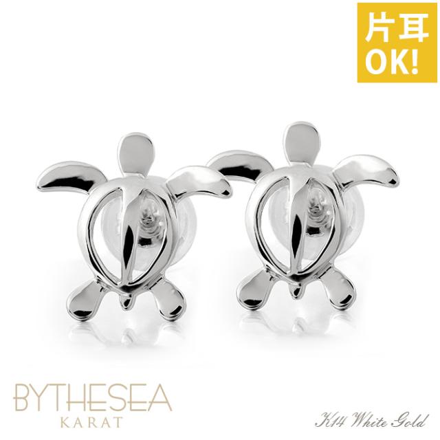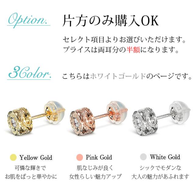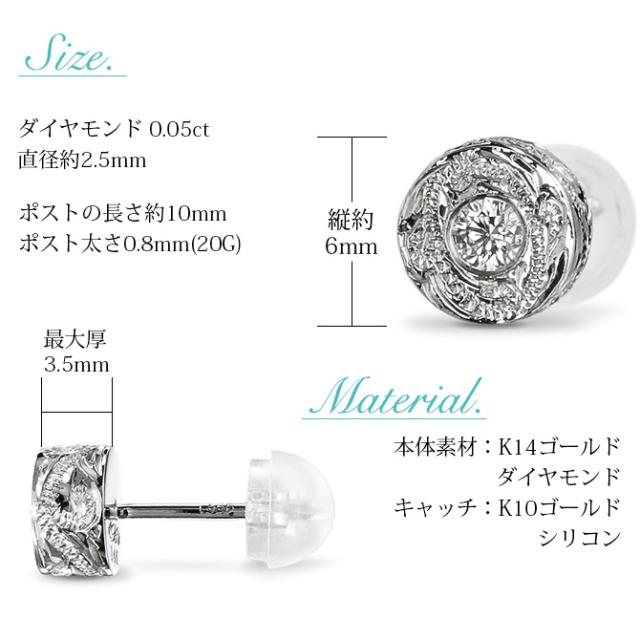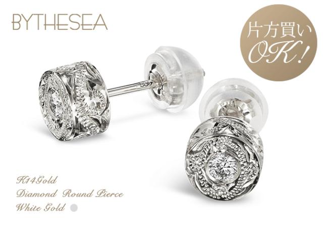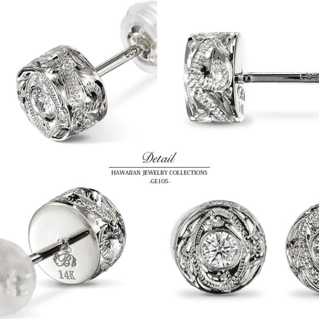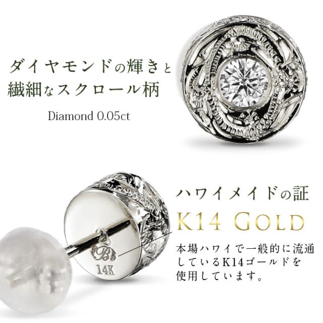 ハワイアンジュエリー ピアス ホワイトゴールド ピアス スタッドピアス ダイヤモンド 0.05ct カラット 一粒ダイヤ 片耳(1個)購入可 K14 14K シリコンキャッチ シンプル 20G ゲージ BY THE SEA バイザシー メンズ レディース プレゼント クリスマス 【品番:GE105W】
