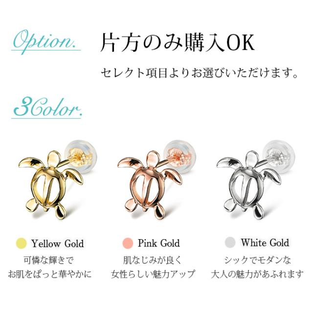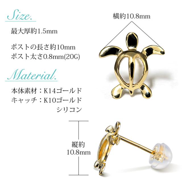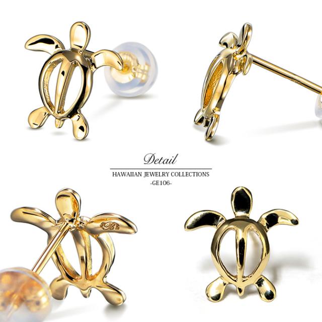 ハワイアンジュエリー ピアス ホヌ イエローゴールド ピアス 幸せ運ぶホヌピアス スタッドピアス 海の守り神 片耳(1個)購入可 K1414K シリコンキャッチ 20G ゲージ BY THE SEA バイザシー メンズ レディース 誕生日 プレゼント クリスマス 【品番:GE106】