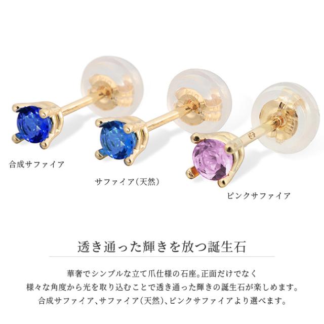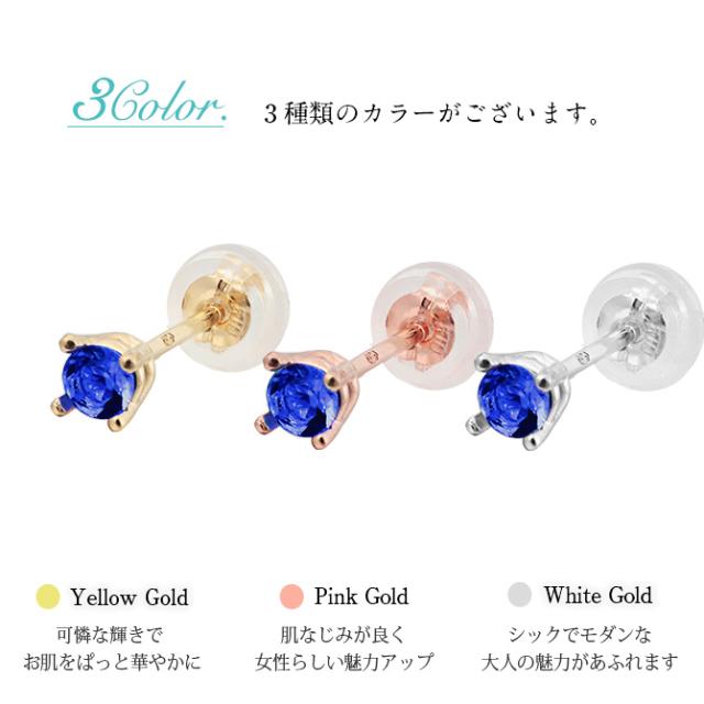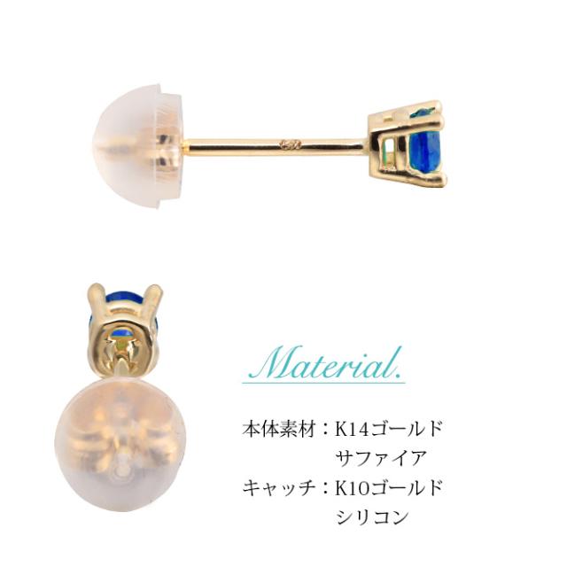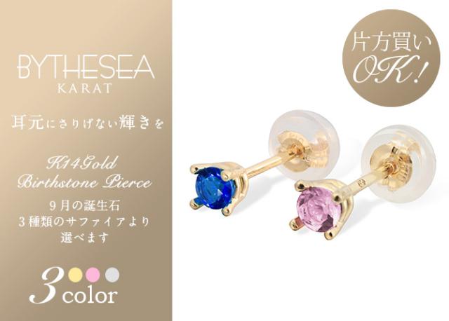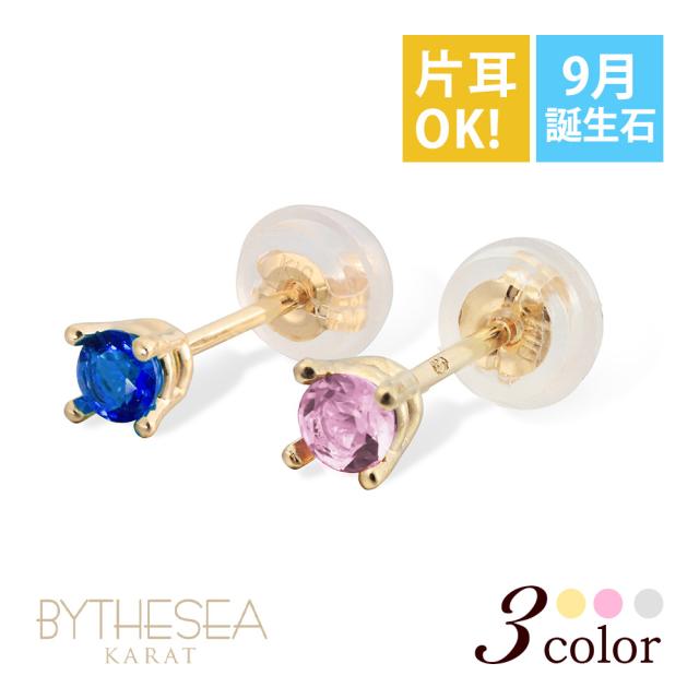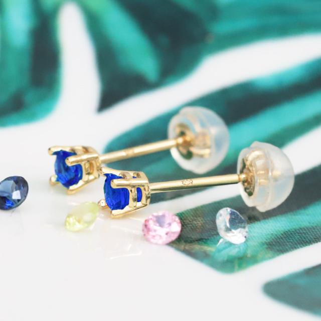 ハワイアンジュエリー ピアス 9月の誕生石 サファイア スタッドピアス イエロー ピンク ホワイト 選べる カラーストーン 片耳(1個)購入可 K14ゴールド 14K シリコンキャッチ シンプル BY THE SEA 20G ゲージ バイザシー プレゼント クリスマス 【品番:GE107-9】