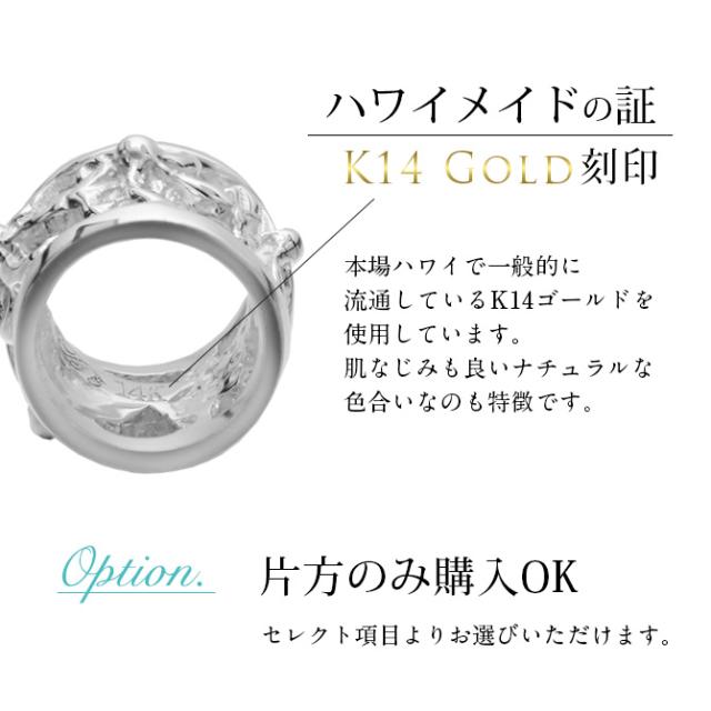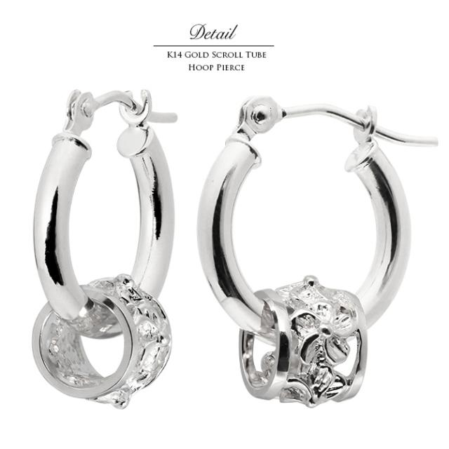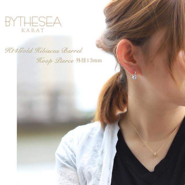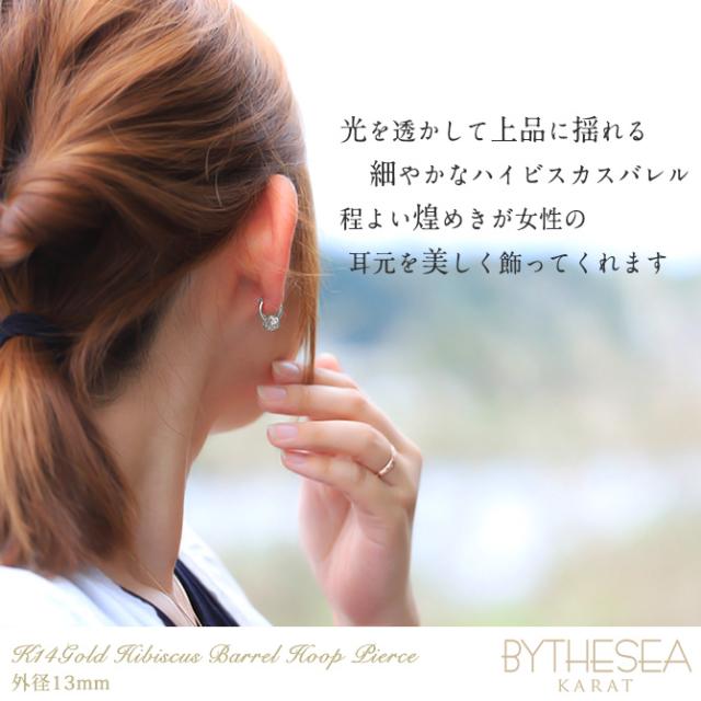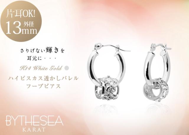 ハワイアンジュエリー フープピアス ピアス ホワイトゴールド ピアス 外径13mm クロッシングピアス ハイビスカス 透かし バレル 樽 小ぶり ゴールド 揺れる 片耳(1個)購入可 K14 14K 0G ゲージ BY THE SEA バイザシー プレゼント クリスマス 【品番:GE212W】
