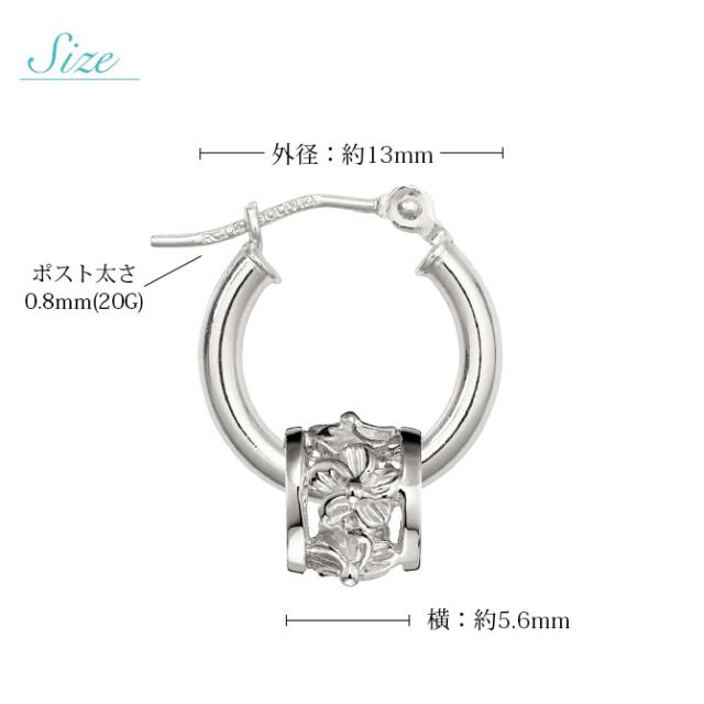 ハワイアンジュエリー 透かしハイビスカスバレル フープピアス 外径13mm