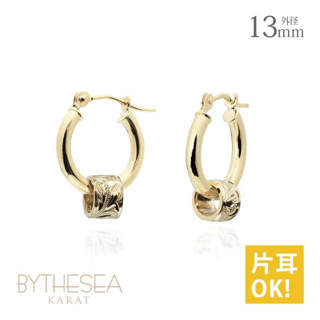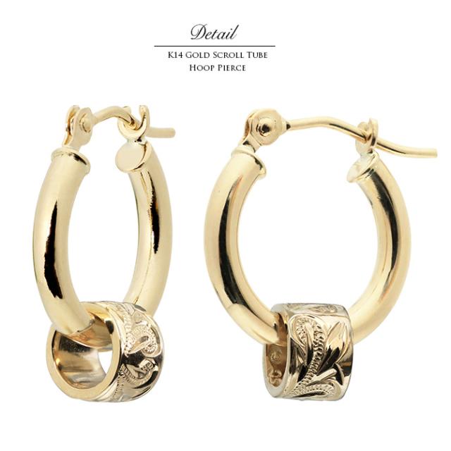 ハワイアンジュエリー フープピアス ピアス イエローゴールド ピアス 外径13mm クロッシングピアス スクロールチューブ 小ぶり ゴールド 揺れる 片耳(1個)購入可 K14 14KPM2053 彼女 妻 女性 レディース プレゼント クリスマス 【品番:GE213】