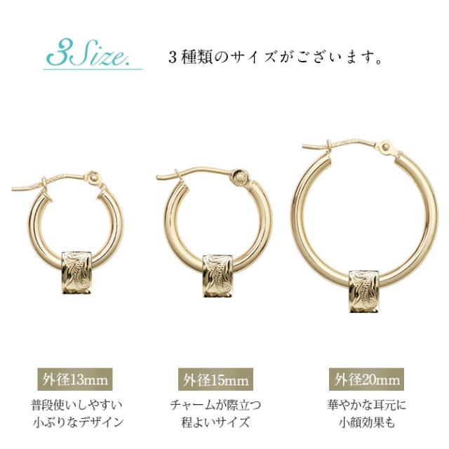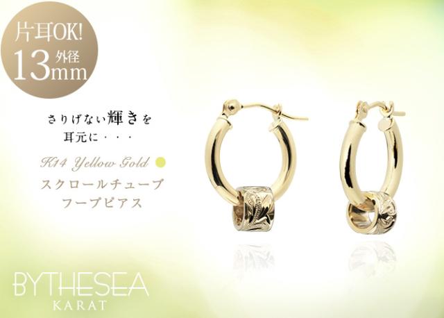 ハワイアンジュエリー スクロールチューブ フープピアス 外径13mm