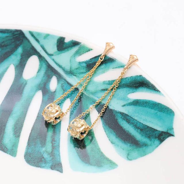 華奢なチェーンとバレルがきらりと煌めくロングピアス