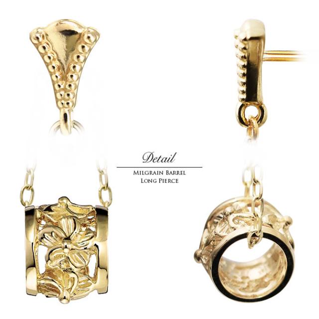 ハワイアンジュエリー ミル打ち ミルグレイン 透かしバレル ロングピアス