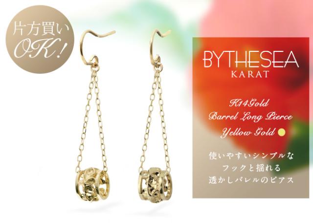 透かし彫りが施されたバレルチャームが、可憐にゆれるロングピアス