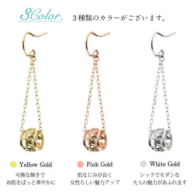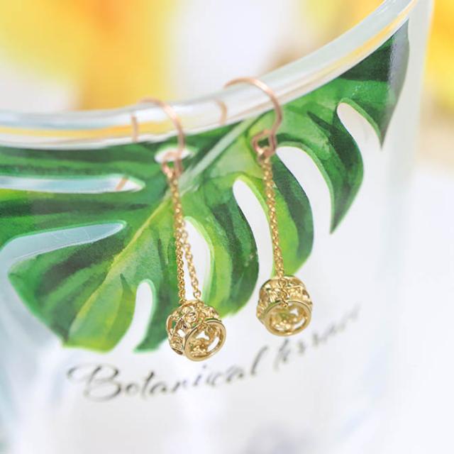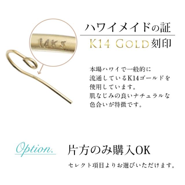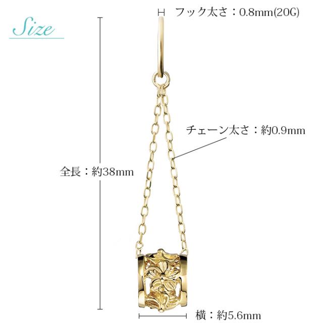 ハワイアンジュエリー ゴールド ピアス イエローゴールド ピアス 透かしバレル フックピアス チェーン プルメリア ハイビスカス 揺れる 片耳(1個)購入可 K14 14K フック 20G ゲージ 彼女 妻 女性 レディース プレゼント ホワイトデー 卒業式 入学式 【品番:GE332】