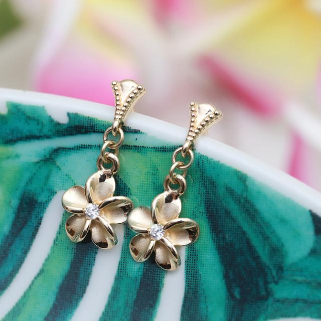 揺れるプルメリアとアンティークの風合いを醸し出すミルグレイン(ミル打ち)で女性らしい耳元に
