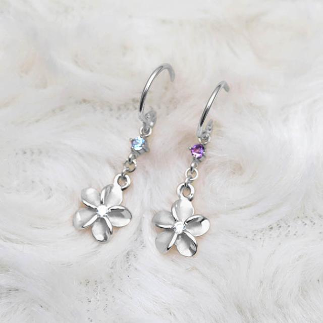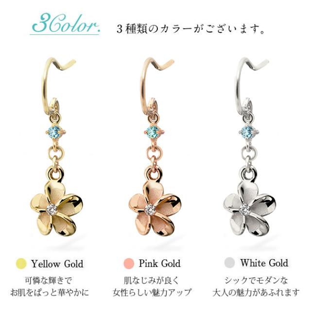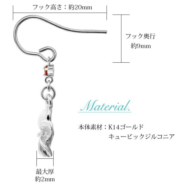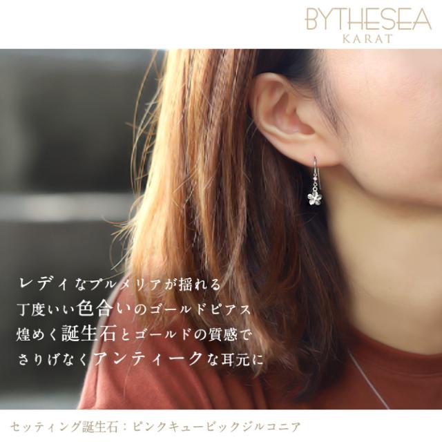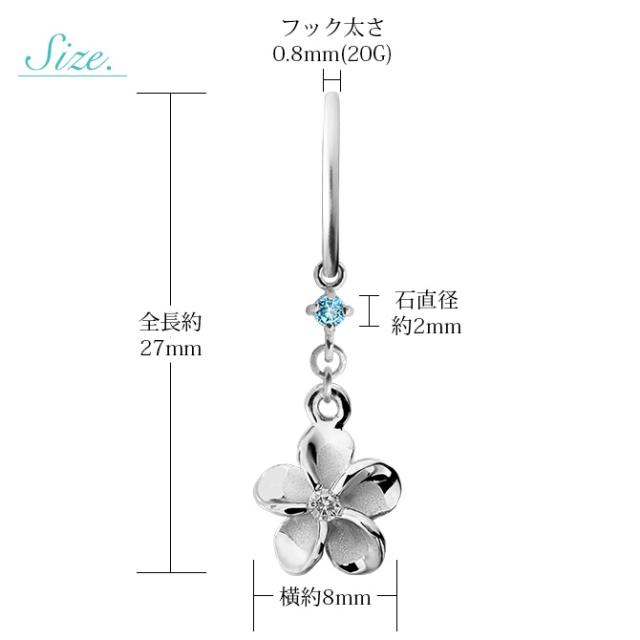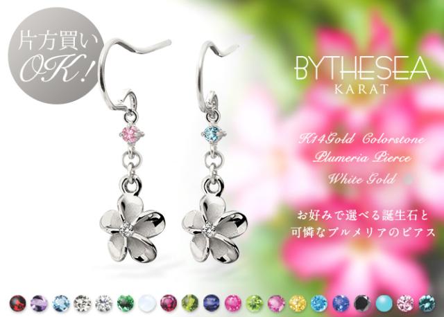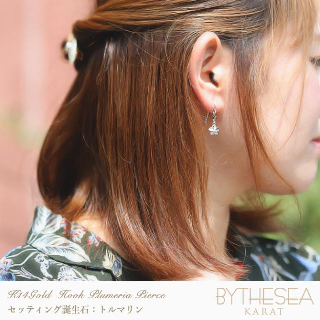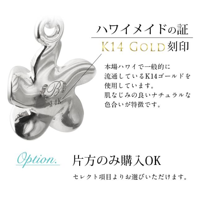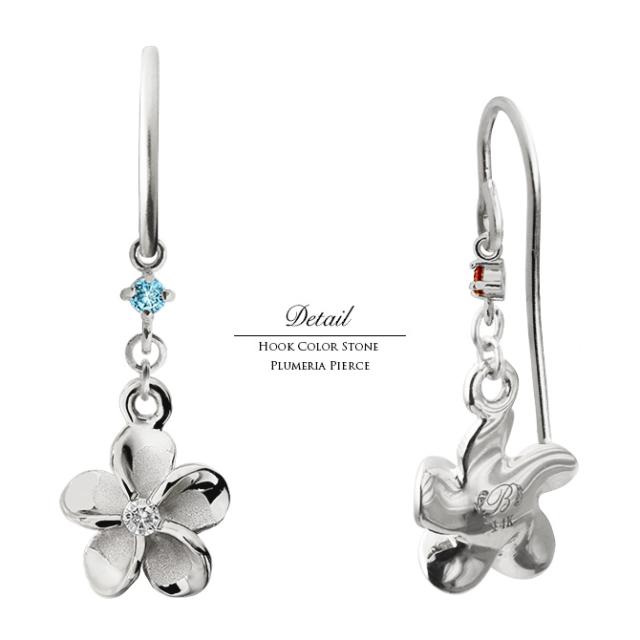 ハワイアンジュエリー ゴールド ピアス プルメリア ホワイトゴールド ピアス 誕生石 選べる フックピアス ジルコニア 揺れる カラーストーン 片耳(1個)購入可 K14 14K 20G ゲージ 彼女 妻 女性 レディース プレゼント クリスマス 【品番:GE433W】