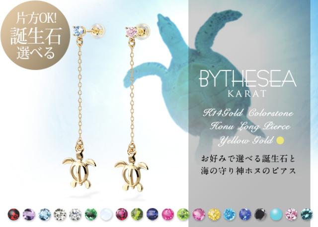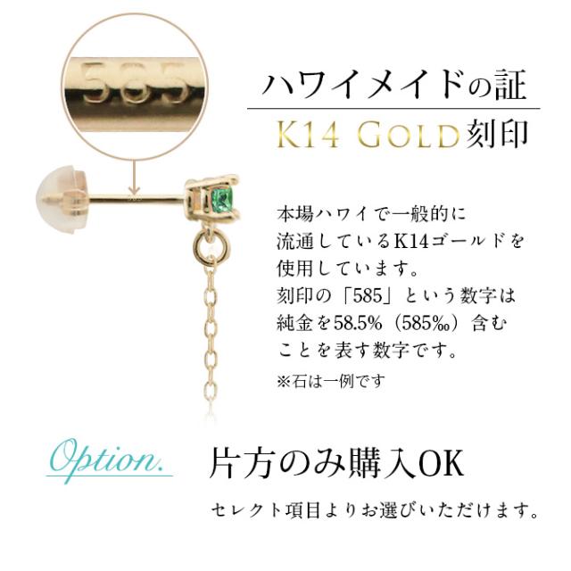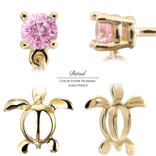 ハワイアンジュエリー ゴールド ピアス ホヌ イエローゴールド ピアス 誕生石 選べる 幸せ運ぶホヌ チェーン 揺れる カラーストーン 片耳(1個)購入可 K14 14K シリコンキャッチ 20G ゲージ 彼女 妻 女性 レディース プレゼント クリスマス 【品番:GE502】