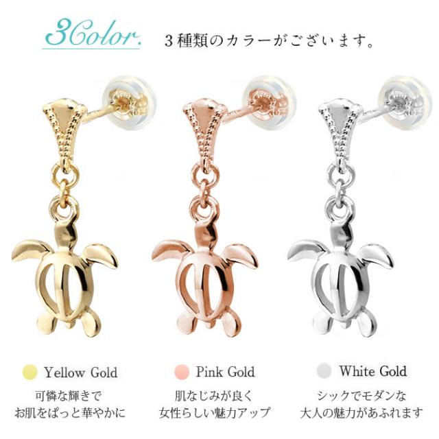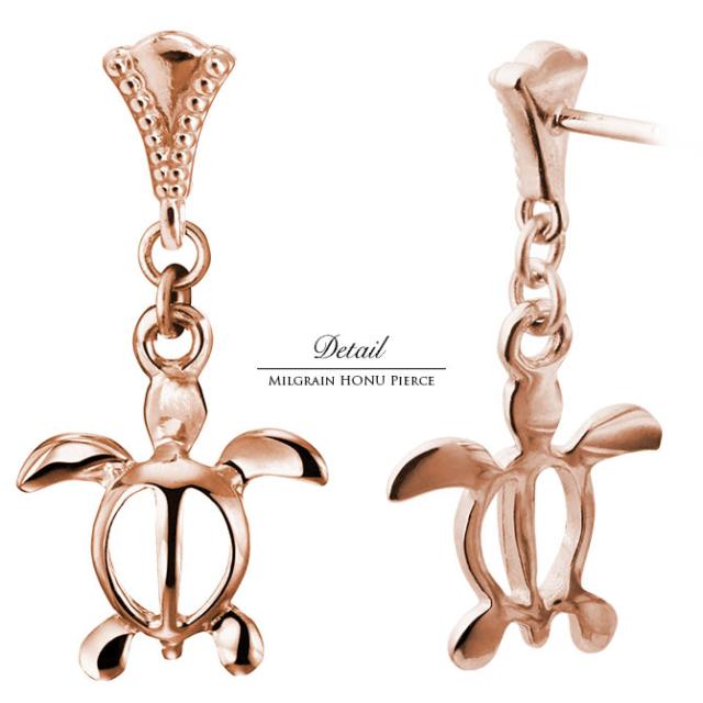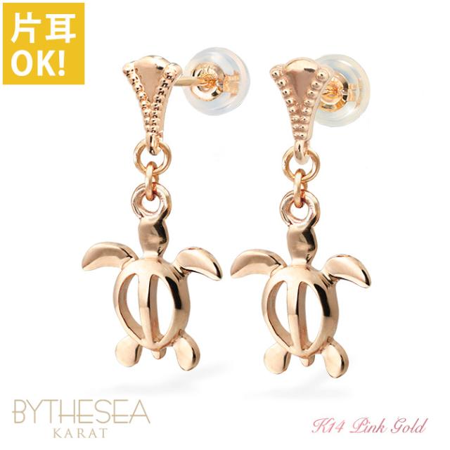 ハワイアンジュエリー ゴールド ピアス ホヌ ピンクゴールド ピアス ミル打ち 幸せ運ぶホヌピアス ミルグレイン 片耳(1個)購入可 K14 14K シリコンキャッチ 20G ゲージ BY THE SEA バイザシー 彼女 妻 女性 レディース 誕生日 プレゼント クリスマス 【品番:GE511R】
