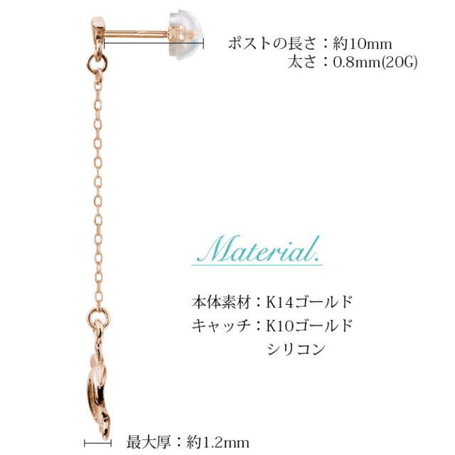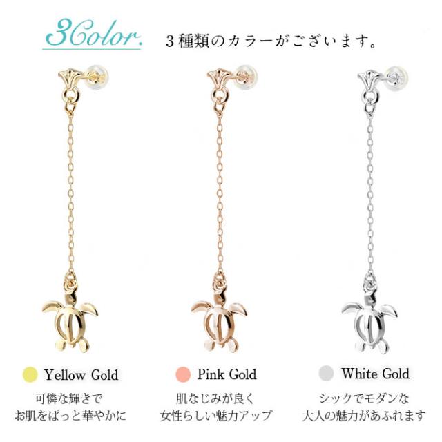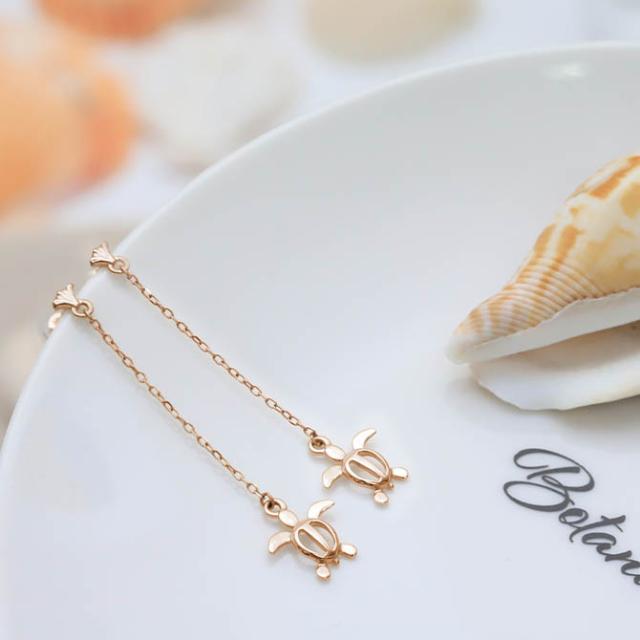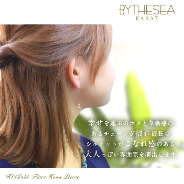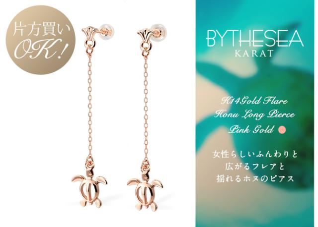 ハワイアンジュエリー ゴールド ピアス ホヌ ピンクゴールド ピアス フレア 幸せ運ぶホヌ チェーン 揺れる 片耳(1個)購入可 K14ピンクゴールド 14K シリコンキャッチ 20G ゲージ BY THE SEA バイザシー 彼女 妻 女性 レディース プレゼント ホワイトデー 【品番:GE522R】