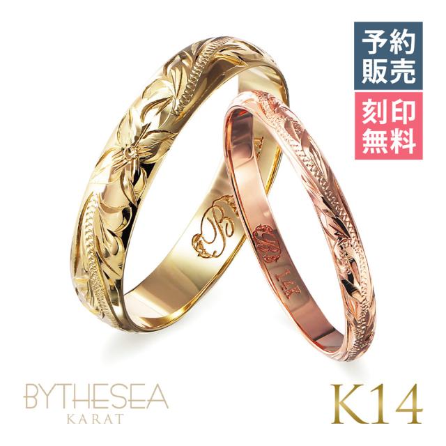 予約注文 ハワイアンジュエリー ペアリング 指輪 リング ペア イエローゴールド ピンクゴールド 2mm×4mm幅 刻印無料 名入れ無料 レディース メンズ K14 14金 GMR1011-1016P-Y