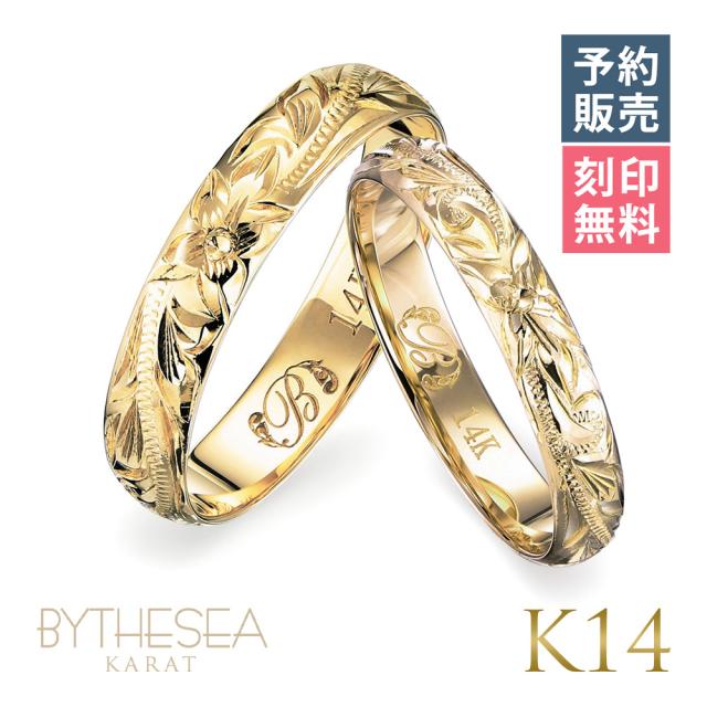 予約注文 ハワイアンジュエリー ペアリング 指輪 リング ペア イエローゴールド 3mm×4mm幅 1号〜19号 刻印無料 名入れ無料 レディース メンズ K14 14金 GMR1011-1018P-Y