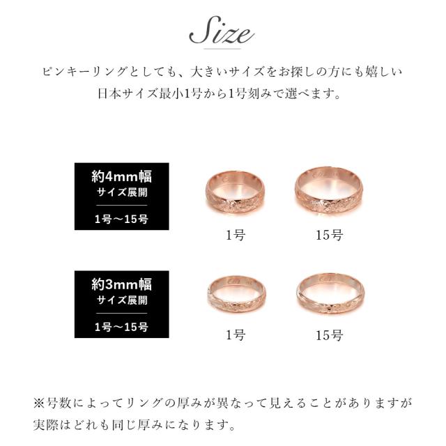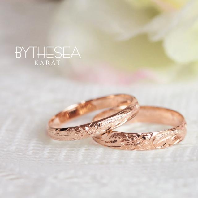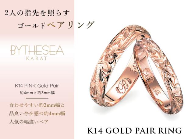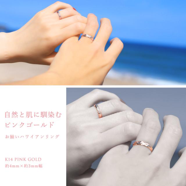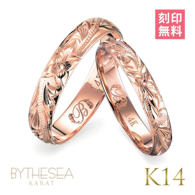 ペアリング 2本セット ハワイアンジュエリー リング ゴールド 刻印 無料 指輪 1号〜15号 幅約4mm×幅約3mm 14K K14ピンクゴールド ギフト対応可 小さいサイズ BY THE SEA バイザシー リング カップル 夫婦 プレゼント クリスマス 【品番:GMR1012-1019P】