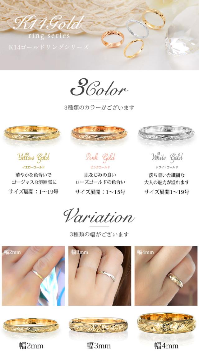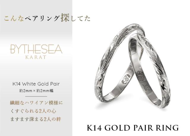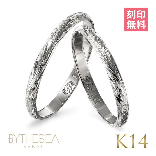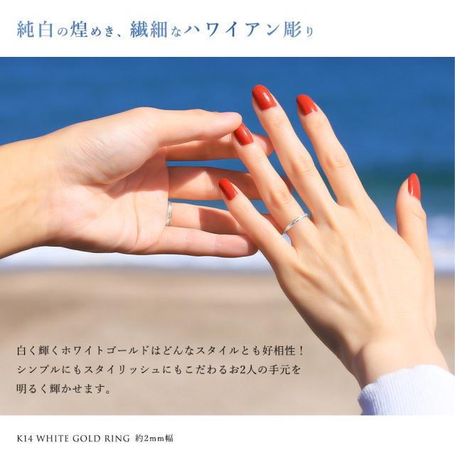 ペアリング 2本セット ハワイアンジュエリー リング ゴールド 刻印 無料 指輪 1号〜19号 幅約2mm 14K K14ホワイトゴールド ギフト対応可 小さいサイズ 2個ペア BY THE SEA バイザシー リング カップル 夫婦 プレゼント クリスマス 【品番:GMR1017P】
