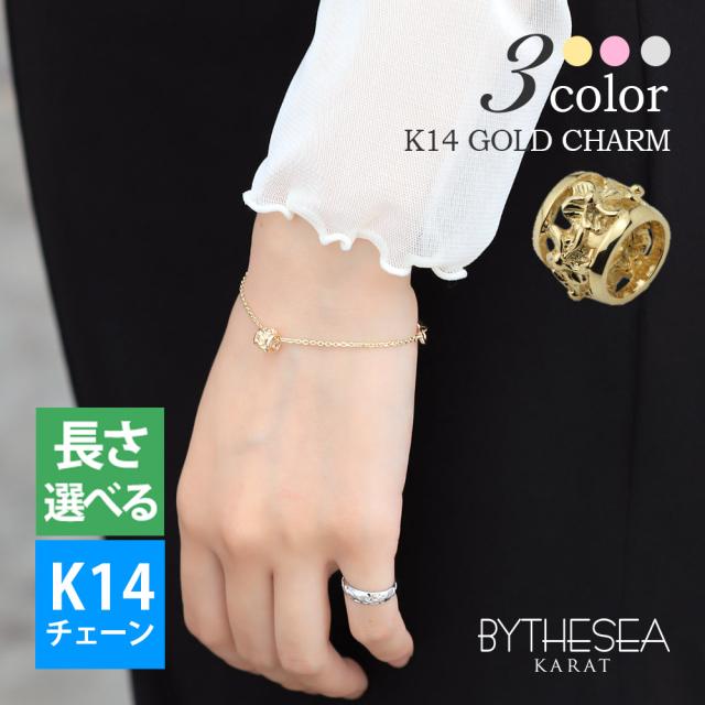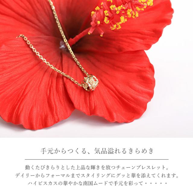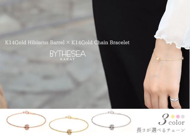 ハワイアンジュエリー ゴールド ブレスレット ハイビスカス 透かし バレル 樽 K14ゴールド チャーム K14ゴールド太1.4mmカットあずきチェーン 長さ 選べる 15cm〜20cm パーツ ブランド BY THE SEA バイザシー プレゼント クリスマス 【品番:GP106-CH1020-B】