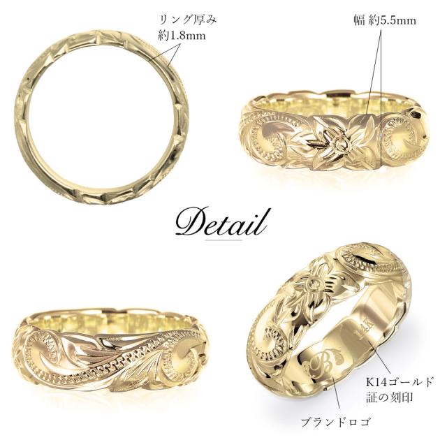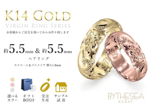 ハワイアンジュエリー 結婚指輪 ペアリング 刻印 無料 誕生石入れ可 指輪 2個セット 専用BOX付 K14 14金 幅約5.5mm 4号〜29号 大きいサイズ 受注生産 ヴァージンリング BY THE SEA バイザシー リング カップル 夫婦 プレゼント 【品番:GSR202P】