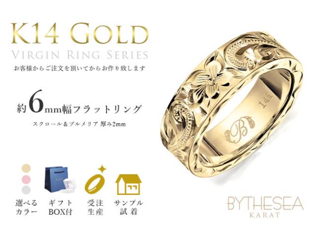 ハワイアンジュエリー K14 ヴァージンリング ヘビーウェイト 約6mm幅 指輪