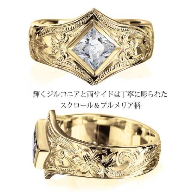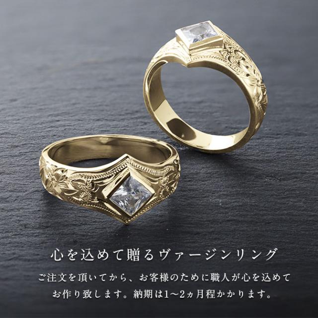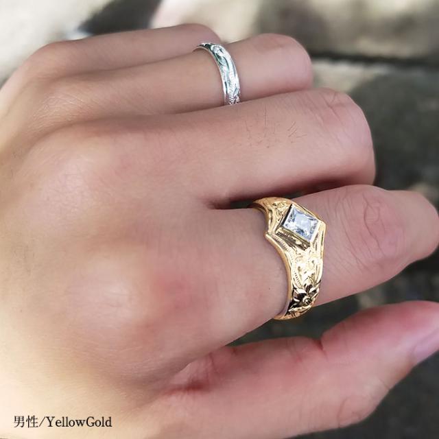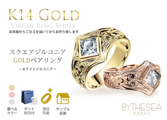 ハワイアンジュエリー K14 ヴァージンペアリング スクエアジルコニア 結婚指輪