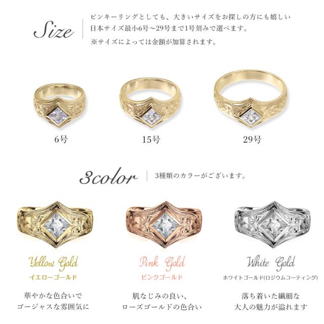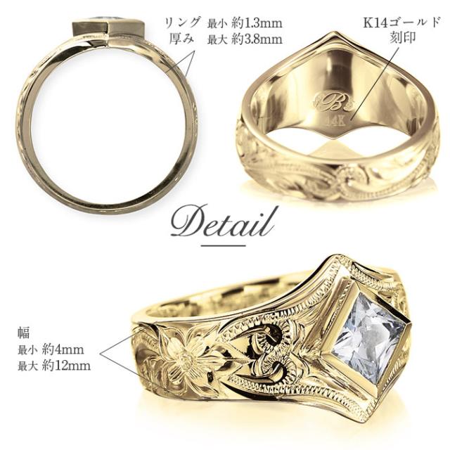 ハワイアンジュエリー 結婚指輪 ペアリング 刻印 無料 誕生石入れ可 指輪 2個セット 専用BOX付 K14 14金 スクエアジルコニア 6号〜29号 大きいサイズ 受注生産 ヴァージンリング リング カップル 夫婦 プレゼント 【品番:GSR601P】