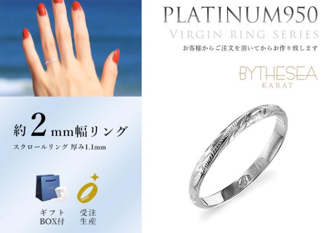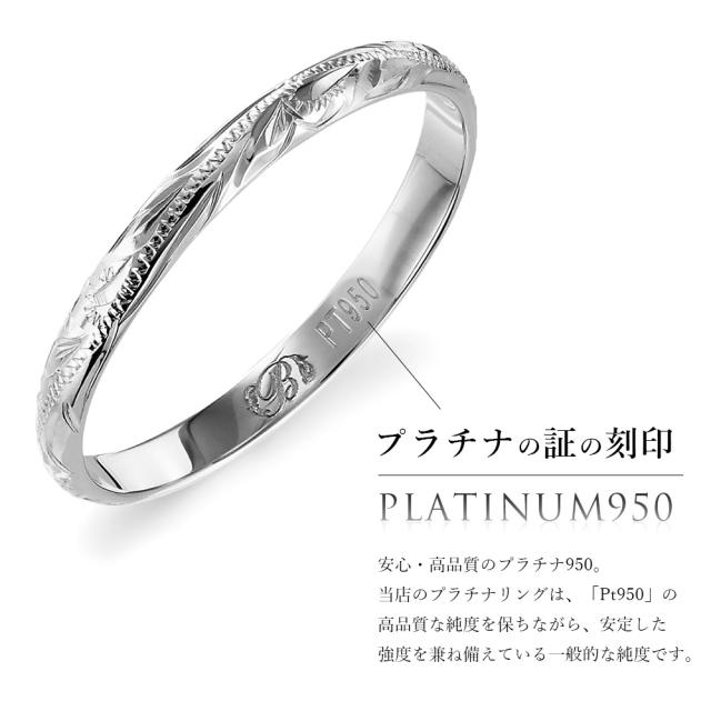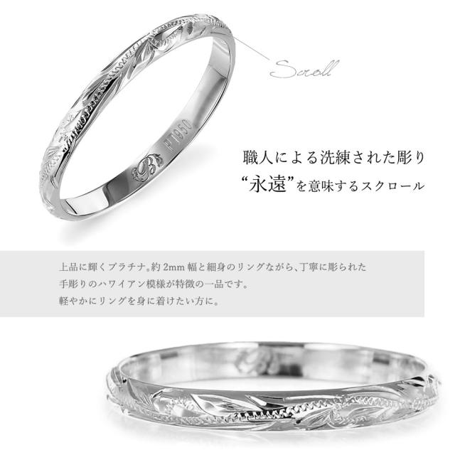 プラチナ ハワイアンジュエリー リング 指輪 刻印 無料 1号〜19号 幅約2mm プラチナ950 PT950 白金 ギフトBOX付き ピンキーリング 指輪 繊細 細身 小さいサイズ ヴァージンリング メンズ レディース 誕生日 プレゼント お正月 成人祝い 【品番:PGMR1015】