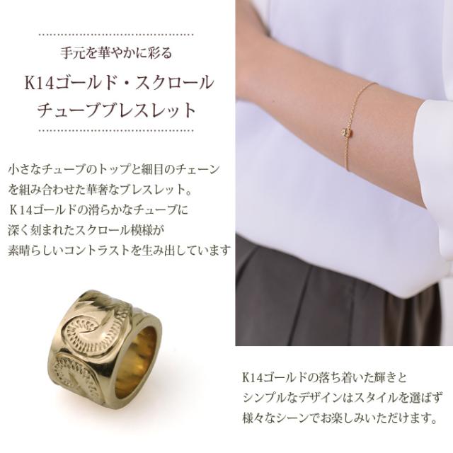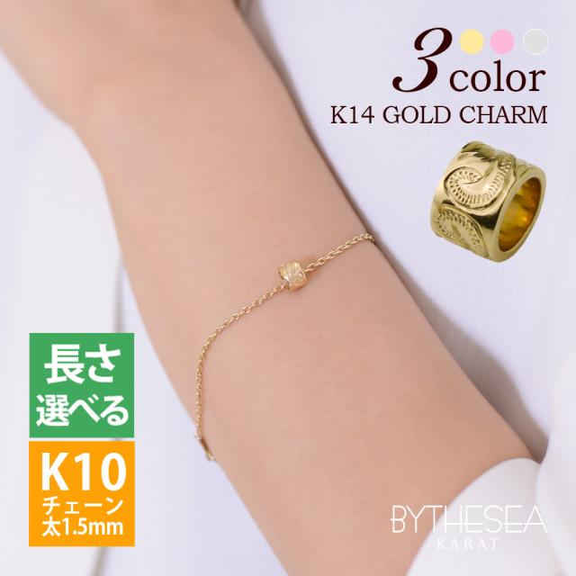 ハワイアンジュエリー ゴールド ブレスレット スクロールチューブ K14ゴールド チャーム K10ゴールド太1.5mmあずきチェーン 長さ選べる15cm〜20cm パーツ ブランド BY THE SEA バイザシー メンズ レディース 誕生日 プレゼント クリスマス 【品番:GP127-CH176-B】