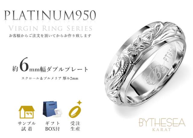 ヴァージンリング ハワイアンジュエリー プラチナ950 リング ダブルプレート 約6mm幅 指輪