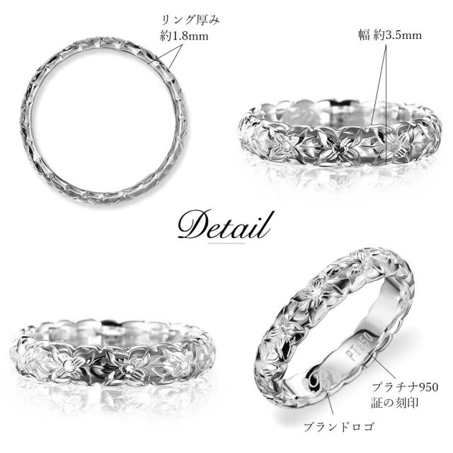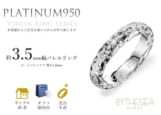 プラチナ リング ハワイアンジュエリー 指輪 刻印 無料 誕生石入れ可 1号〜29号 幅約3.5mm 厚み2mm オールプルメリア PT950 白金 ギフトBOX付き ピンキーリング 指輪 小さいサイズ ヴァージンリング メンズ レディース 誕生日 プレゼント 【品番:PSR501】